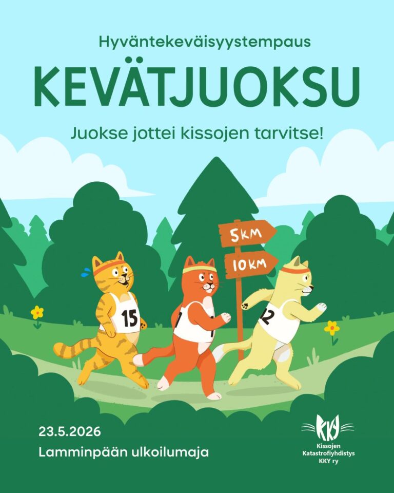 Tampereella liikutaan hyvän asian puolesta. Osallistumalla tuet Kissojen Katastrofiyhdistyksen toimintaa. Kerätyt varat käytetään KKY:lle saapuvien kodittomien kissojen hoitoon, kuten kastrointeihin ja sterilointeihin.